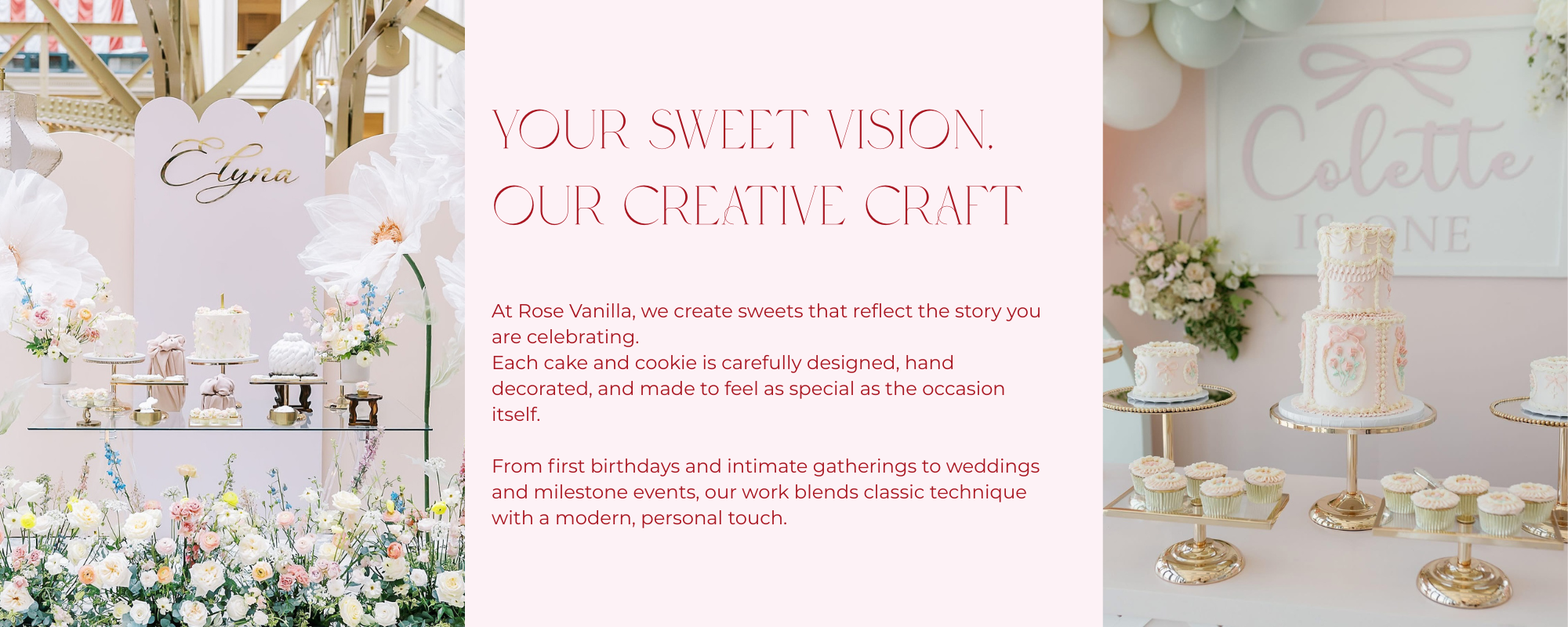 We specialize in creating the most beautiful cakes and custom sweets for life’s loveliest moments.
