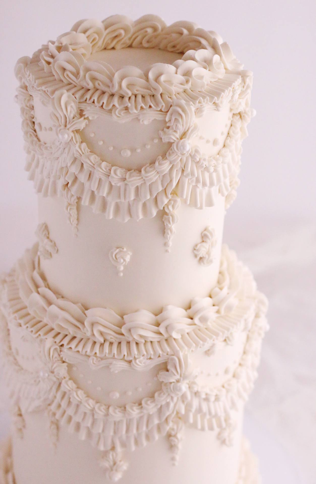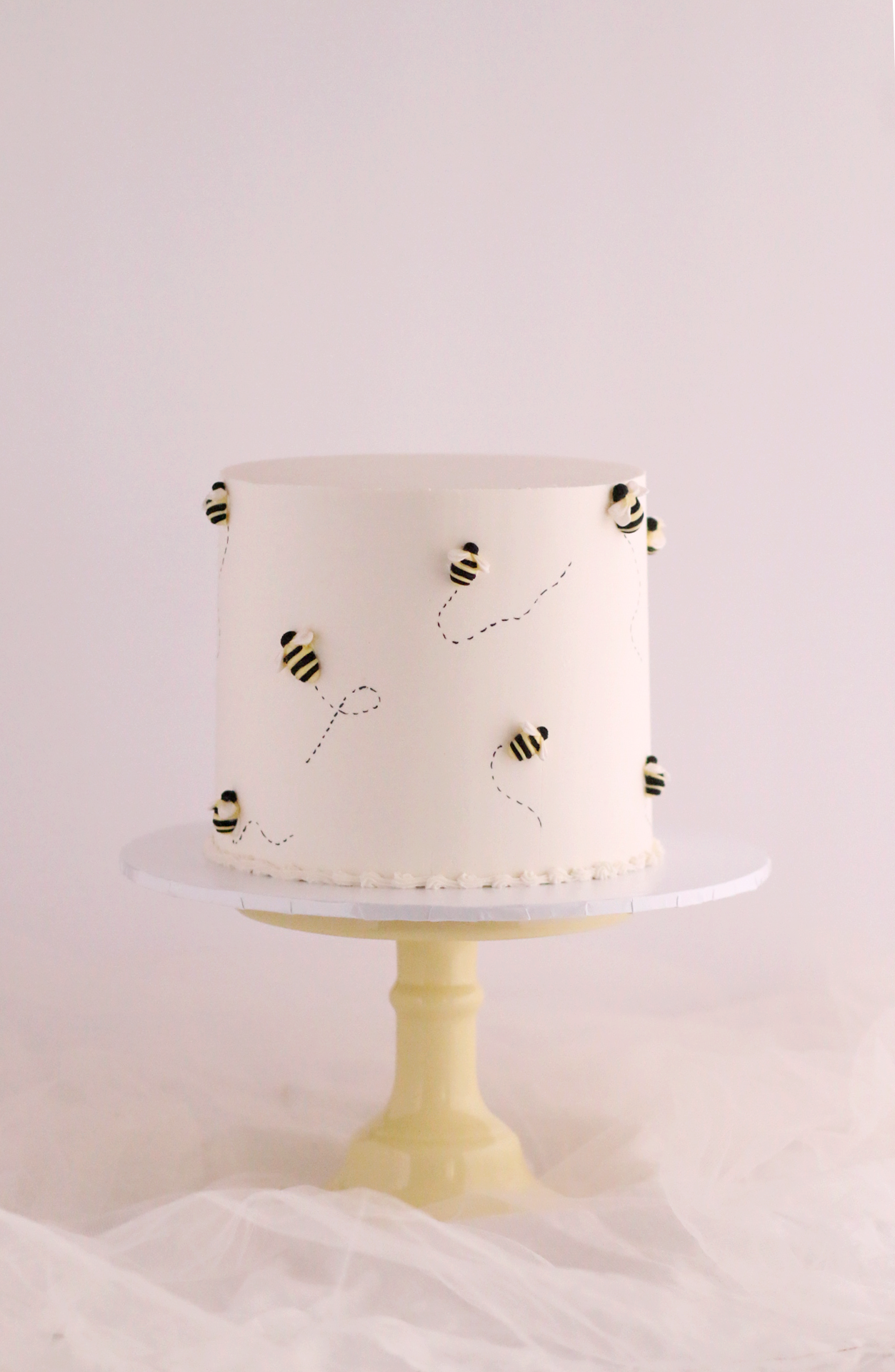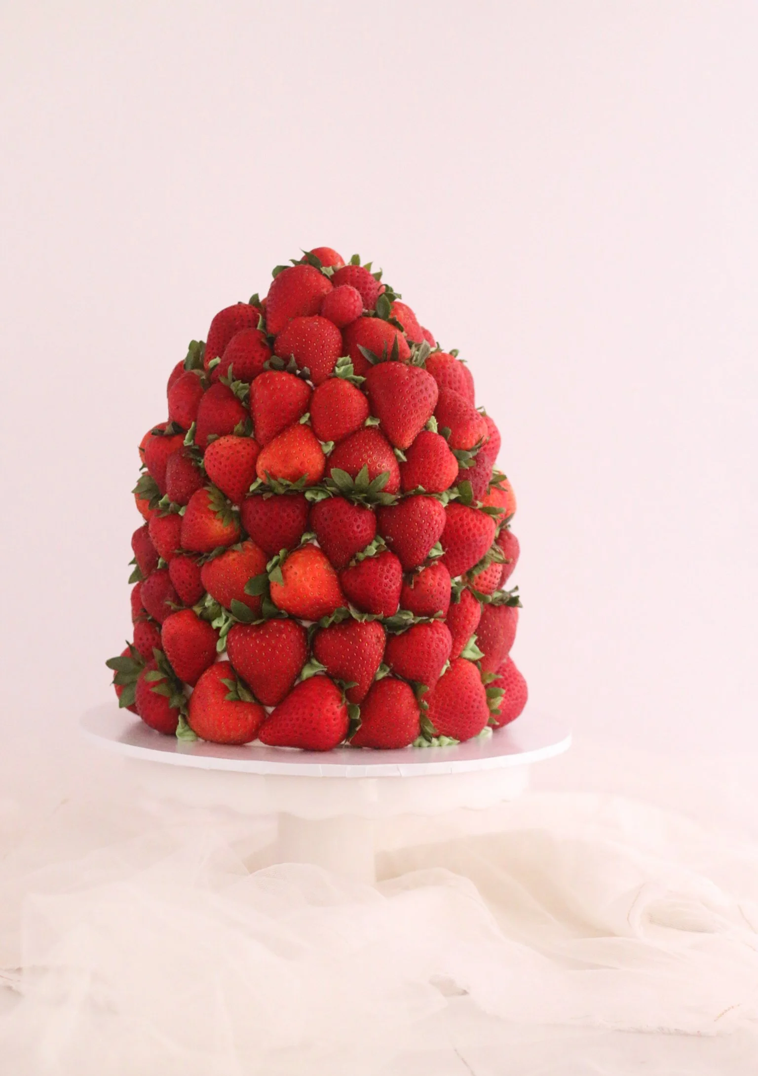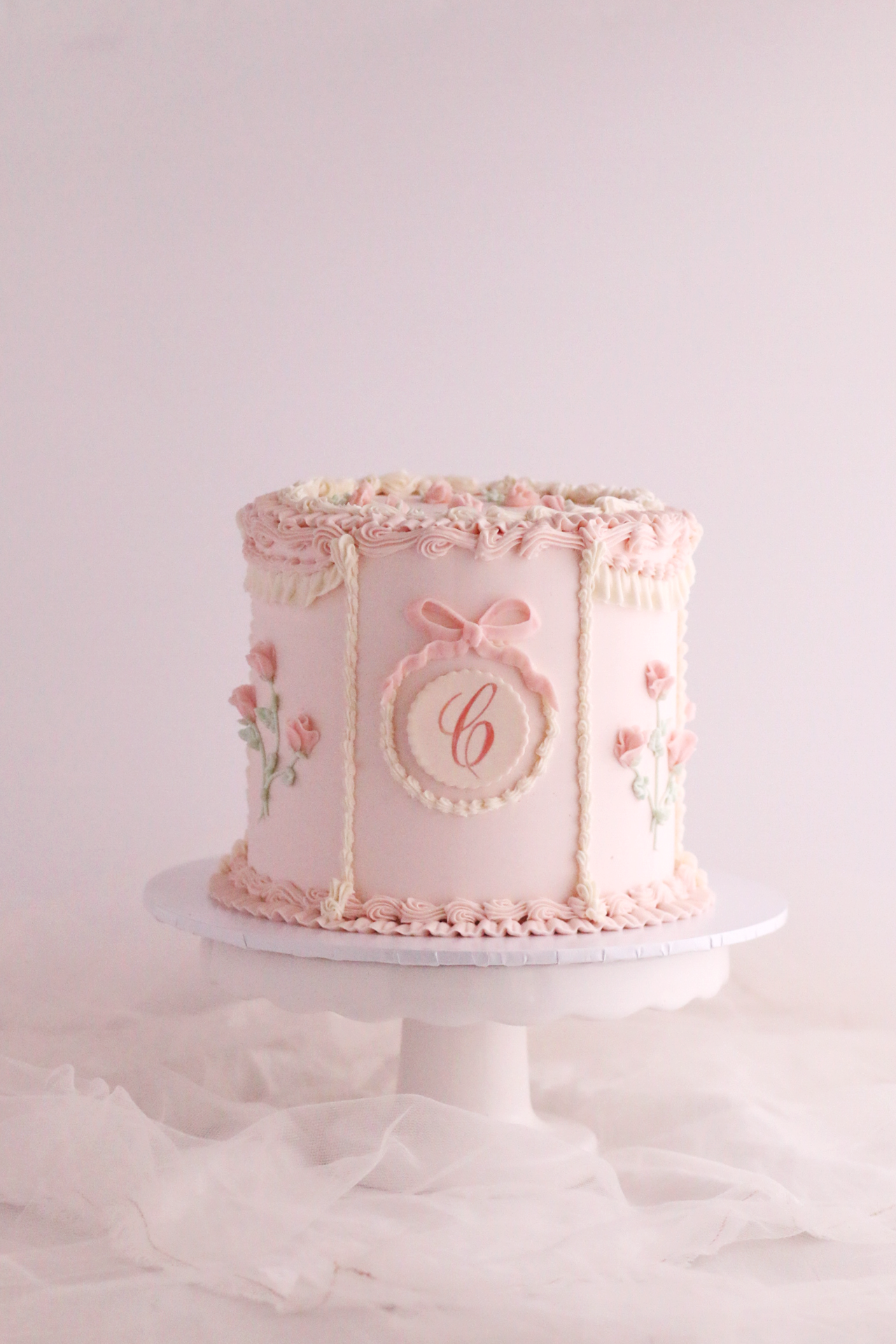 /A set of four fruit mini cakes: blueberry, cherry, lemon, and tomato; decorated with vintage buttercream piping for an Italian-themed birthday. Custom celebration cakes by Rose Vanilla in Fairfax, VA.